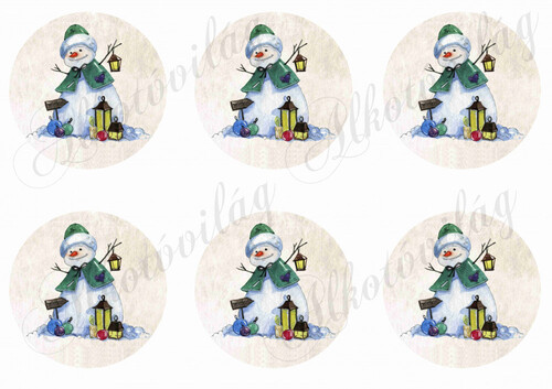 Festett hóemberke lámpással KÖR ALAPON - Több mint 20 alapanyagon elérhető.