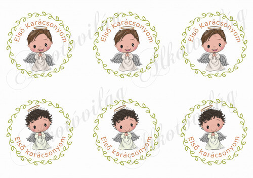 Fiú angyalkák - ELSŐ KARÁCSONYOM felirattal - Több mint 20 alapanyagon elérhető.