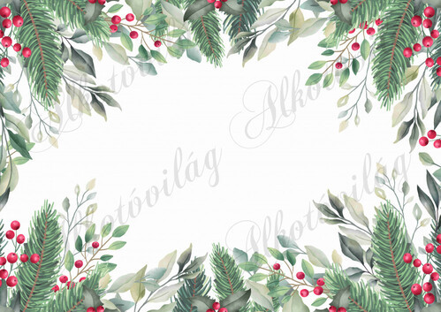 Fotóháttér termékfotózáshoz - fenyőágak, levelek, piros bogyók - Több mint 20 alapanyagon elérhető.