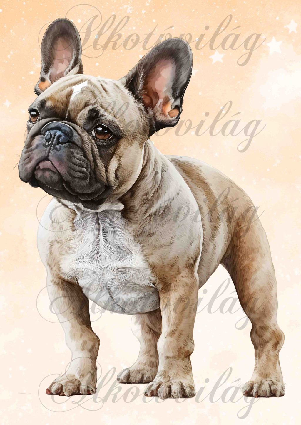 Francia bulldog kutya narancsos háttérrel - PÁRNABLOKK, VÁSZONTÁSKA BLOKK, PATCHWORK BLOKK, UZSONNÁSTASAK BLOKK