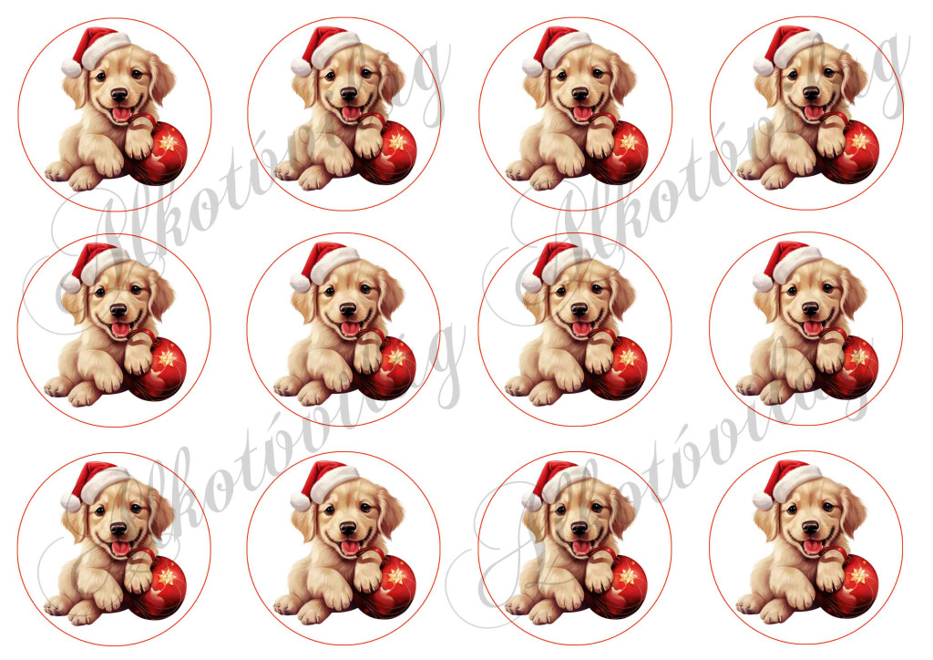 Golden kölyök kiskutya mikulássapkában 6 cm körökben