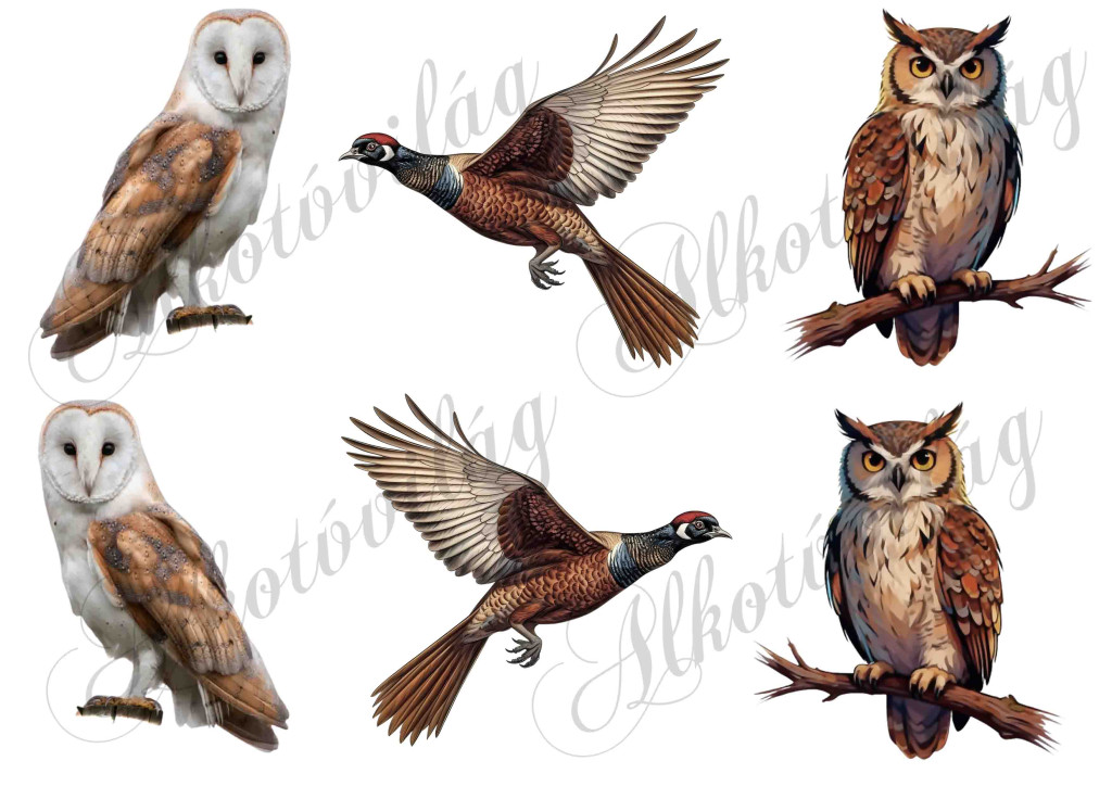 Gyöngybagoly, fácán, fülesbagoly madarak - 9 cm magas