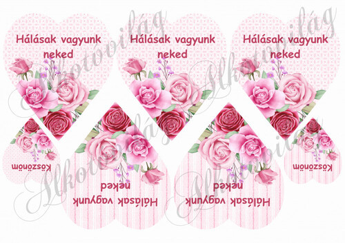 HÁLÁSAK VAGYUNK NEKED- Rózsaszín rózsás szíveken - Több mint 20 alapanyagon elérhető.