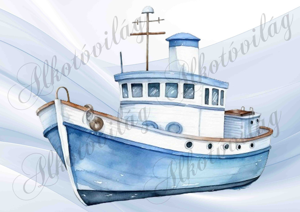 Hajó akvarell stílusban festve 3 - PÁRNABLOKK, VÁSZONTÁSKA BLOKK, PATCHWORK BLOKK, UZSONNÁSTASAK BLOKK