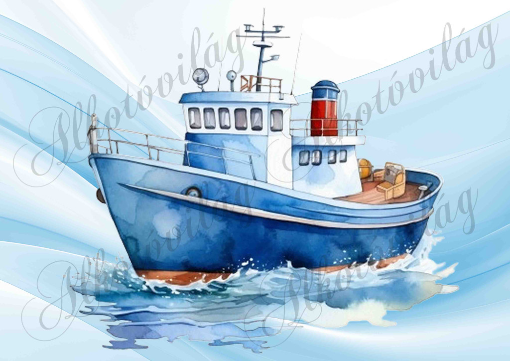 Hajó akvarell stílusban festve 4 - PÁRNABLOKK, VÁSZONTÁSKA BLOKK, PATCHWORK BLOKK, UZSONNÁSTASAK BLOKK