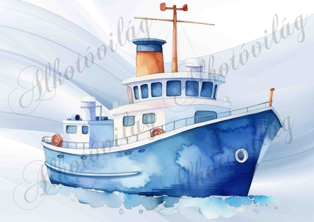 Hajó akvarell stílusban festve 6 - PÁRNABLOKK, VÁSZONTÁSKA BLOKK, PATCHWORK BLOKK, UZSONNÁSTASAK BLOKK