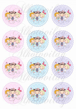 Három kislány pöttyös - cakkos alapon KICSIBEN - Több mint 20 alapanyagon elérhető.