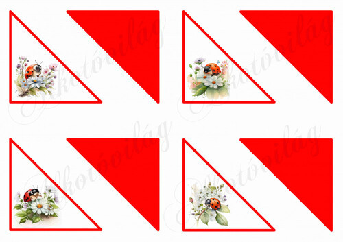 Háromszög könyvjelzők katicákkal - Több mint 20 alapanyagon elérhető.