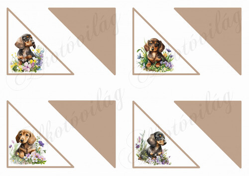 Háromszög könyvjelzők tacskó kutyusokkal - Több mint 20 alapanyagon elérhető.