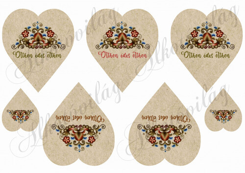 Hódmezővásárhelyi minta kraft szíveken otthon édes otthon feliratokkal - Több mint 20 alapanyagon elérhető.
