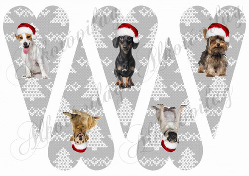Hosszúkás kötött mintás szívek mikulássapkás kutyusokkal - Több mint 20 alapanyagon elérhető.