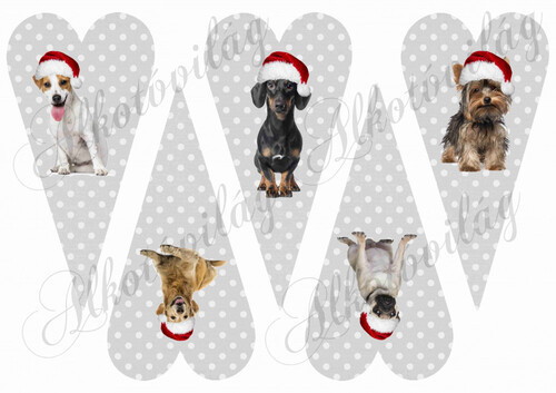 Hosszúkás pöttyös szívek mikulássapkás kutyusokkal - Több mint 20 alapanyagon elérhető.
