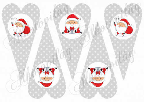 Hosszúkás szívek MIKULÁSOKKAL pöttyös-szürke alapon - Több mint 20 alapanyagon elérhető.