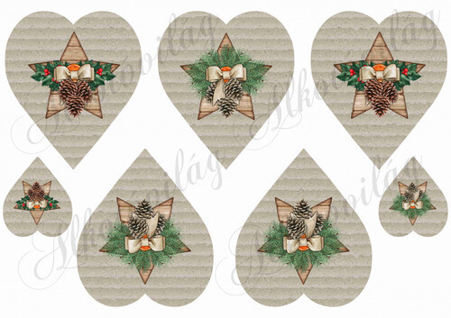 Hullámkarton szívek karácsonyi szívek dekorációkkal - Több mint 20 alapanyagon elérhető.