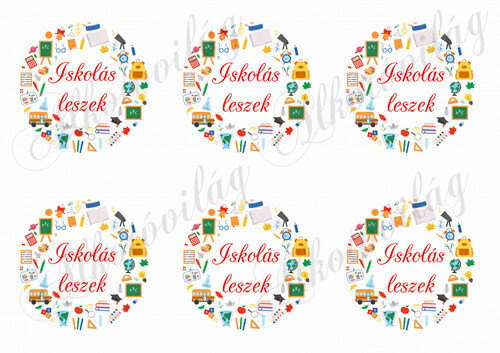 Iskolás leszek feliratos körök iskolai eszközökkel - Több mint 20 alapanyagon elérhető.