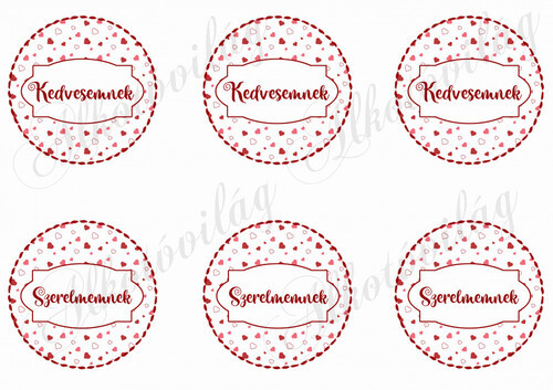 KEDVESEMNEK-SZERELMEMNEK felirat aprócska szíves körökben