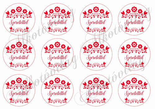 Kalocsai körök - SZERETETTEL felirattal - 6 cm - Több mint 20 alapanyagon elérhető.