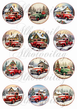 Karácsonyfadíszek autókkal,házakkal - 6,5 cm - Több mint 20 alapanyagon elérhető.