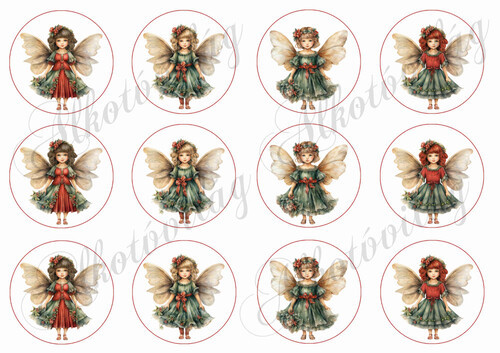 Karácsonyi angyalkák zöld - piros ruhában - 6,5 cm - Több mint 20 alapanyagon elérhető.