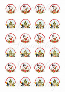 Karácsonyi kör címkék hóemberrel, pingvinekkel - Több mint 20 alapanyagon elérhető.