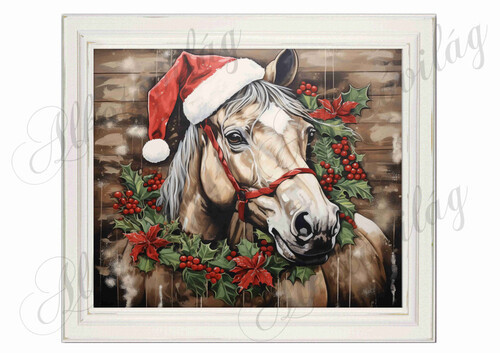 Karácsonyi ló képkeretben - 19,5 x 22 cm - Több mint 20 alapanyagon elérhető.