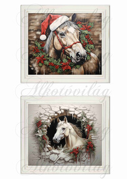 Karácsonyi lovak képkeretben - 15x13 cm - Több mint 20 alapanyagon elérhető.