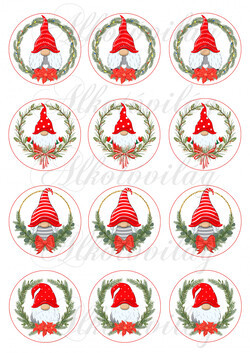 Karácsonyi manók fenyőkoszorúkban körökben - Több mint 20 alapanyagon elérhető.