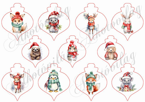 Karácsonyi ovális díszek cuki téli állatkákkal 6,5 és 5,5 cm szélesek - Több mint 20 alapanyagon elérhető.