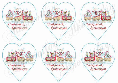 Karácsonyi vonat szíveken UNOKÁMNAK KARÁCSONYTRA felirattal 9,5 cm magas
