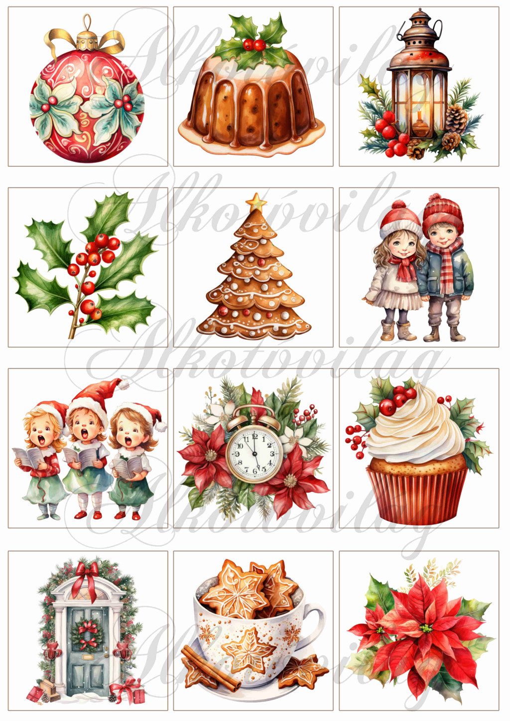 Kártyák retro karácsonyi mintákkal - 6,5 x 6,5 cm - Több mint 20 alapanyagon elérhető.