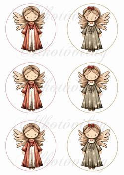 Kedves angyalkák barnás és zöldes ruhában - 8,5 cm körökben