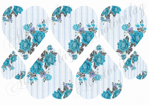Kék csíkos szívek kék virágokkal - Több mint 20 alapanyagon elérhető.