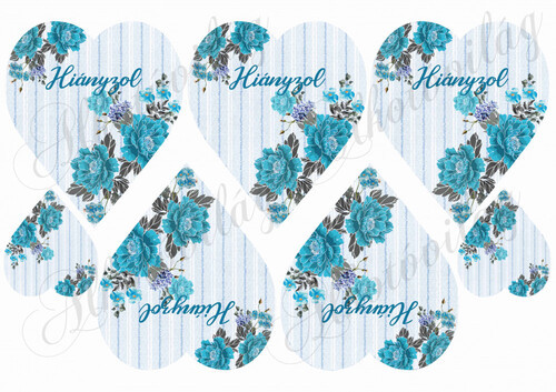 Kék csíkos szívek kék virágokkal hiányzol felirattal - Több mint 20 alapanyagon elérhető.