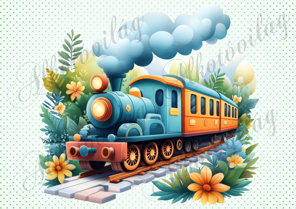 Kék-sárga vonat virágokkal - PÁRNABLOKK, VÁSZONTÁSKA BLOKK, PATCHWORK BLOKK, UZSONNÁSTASAK BLOKK