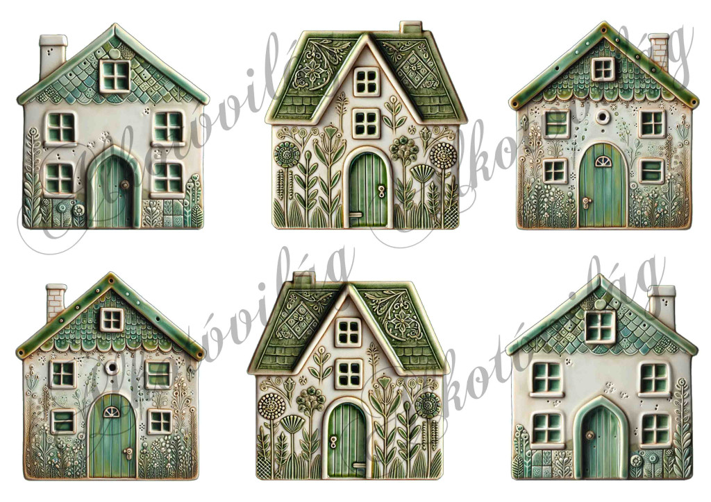 Kerámia házikók zöld színben - kb. 8,5 cm magas