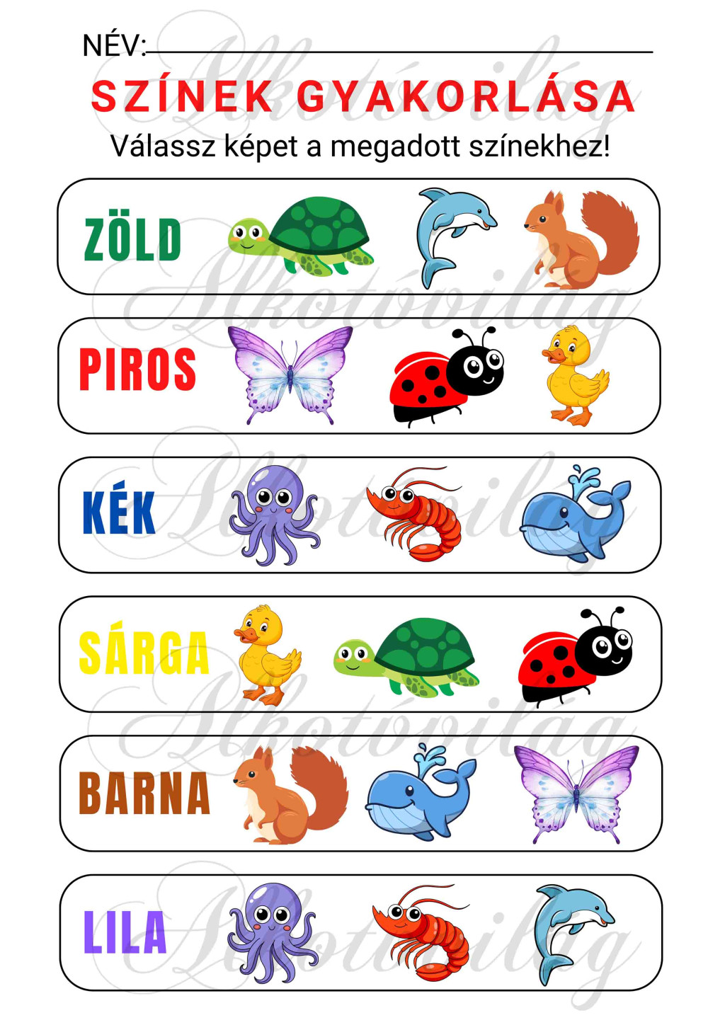 Készségfejlesztő lap - SZÍNEK GYAKORLÁSA