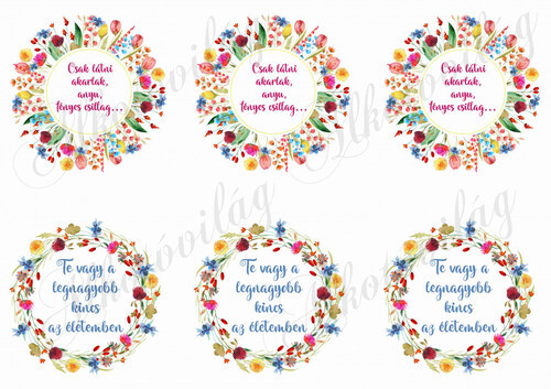 Kétféle virágkoszorú anyák napi feliratokkal CSAK LÁTNI AKARLAK - Több mint 20 alapanyagon elérhető.
