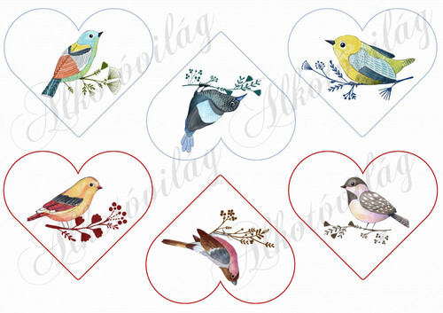Kézzel festett csodás madárkák szívekben - Több mint 20 alapanyagon elérhető.