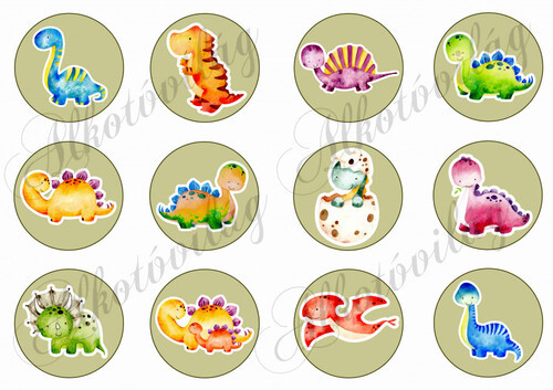 Kézzel festett cuki dinoszauruszok körökben - Több mint 20 alapanyagon elérhető.