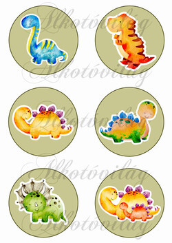Kézzel festett dinoszauruszok 8,5 cm-es körökben - Több mint 20 alapanyagon elérhető.