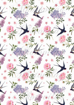 Kézzel festett fecskék rózsákkal, orgonákkal - Több mint 20 alapanyagon elérhető.