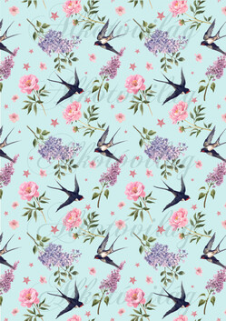 Kézzel festett fecskék rózsákkal, orgonákkal TÜRKIZ ALAPON - Több mint 20 alapanyagon elérhető.