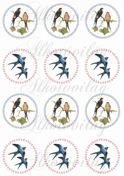 Kézzel festett fecskék varrott szélű körökben KICSIBEN - Több mint 20 alapanyagon elérhető.