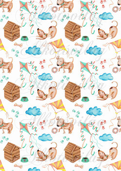 Kézzel festett kutyusok házikókkal, felhőkkel, papírsárkánnyal - Több mint 20 alapanyagon elérhető.