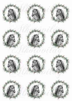 Kézzel festett ló karácsonyi koszorúban KICSIBEN - Több mint 20 alapanyagon elérhető.