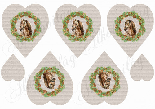 Kézzel festett ló karácsonyi koszorúban hullámpapír struktúrájú szíveken - Több mint 20 alapanyagon elérhető.