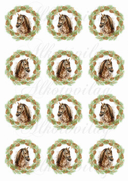 Kézzel festett ló karácsonyi tobozos koszorúban KICSIBEN