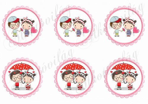 Kisfiú- kislány cakkos körökben - Valentin napra - Több mint 20 alapanyagon elérhető.