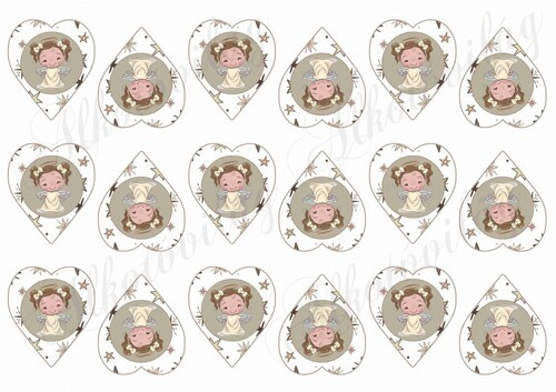 Kislány angyalkák csillagos szívekben MINIBEN - 5 cm magas - Több mint 20 alapanyagon elérhető.
