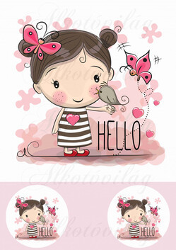 Kislány kismadárral és pillangókkal 20 cm-es HÍMZŐKERETHEZ - Több mint 20 alapanyagon elérhető.